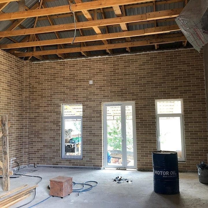 Песочный 100й микс на фасаде. Примеры фасадов наших клиентов.